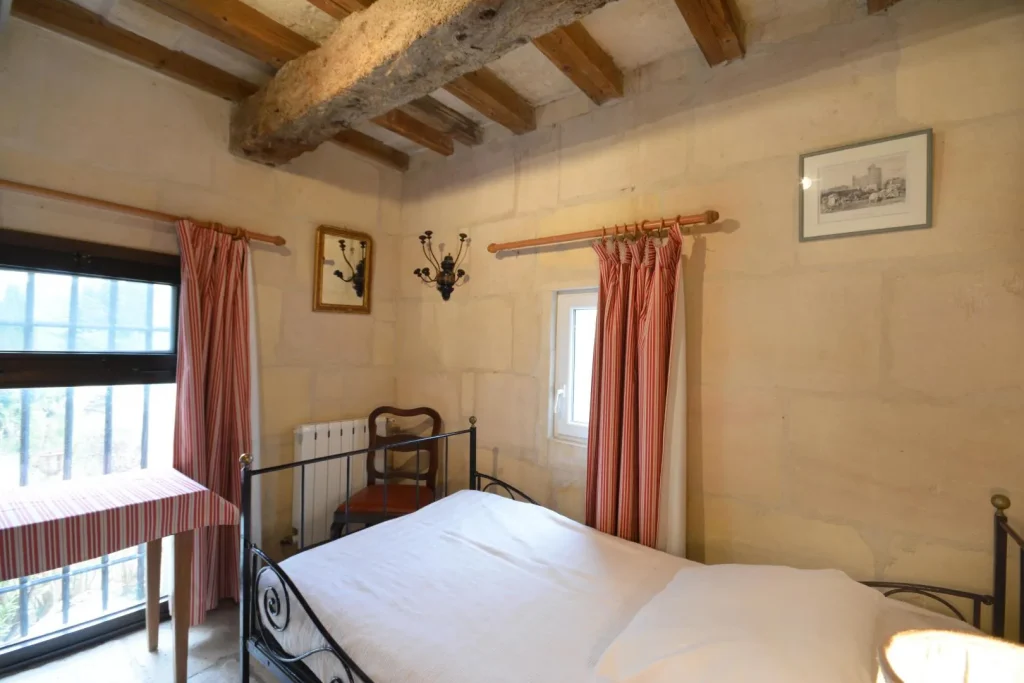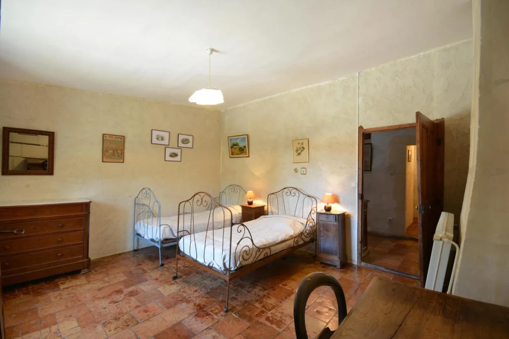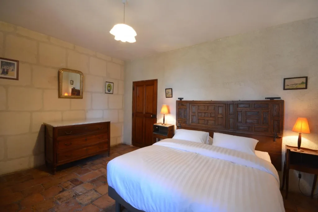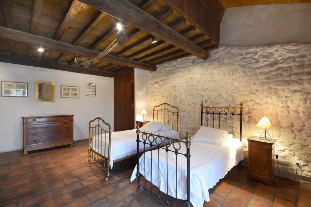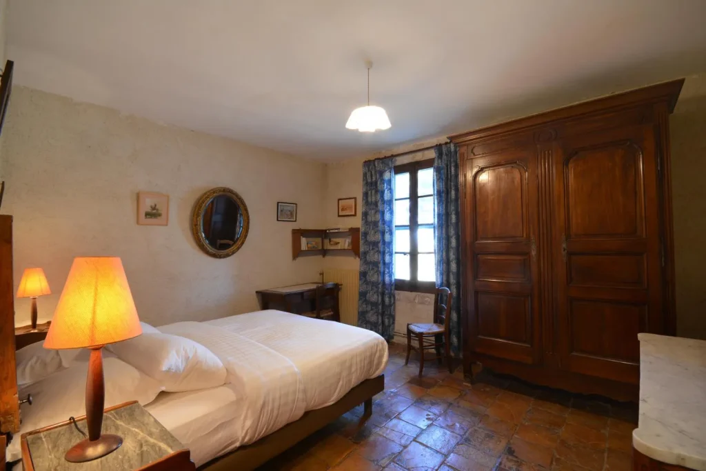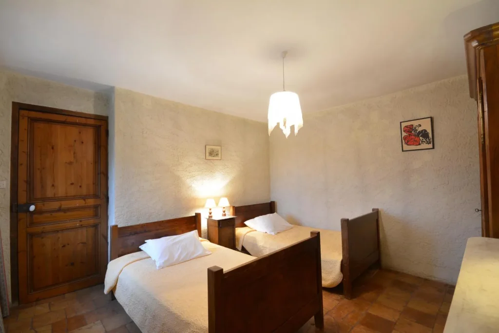 Une vaste chambre avec beaucoup de cachet, comprenant un lit en 140 et un lit 1 personne (90x190cm), traversante. Une chambre avec deux lits 1 personne en 100x190cm, accessible par la première chambre.