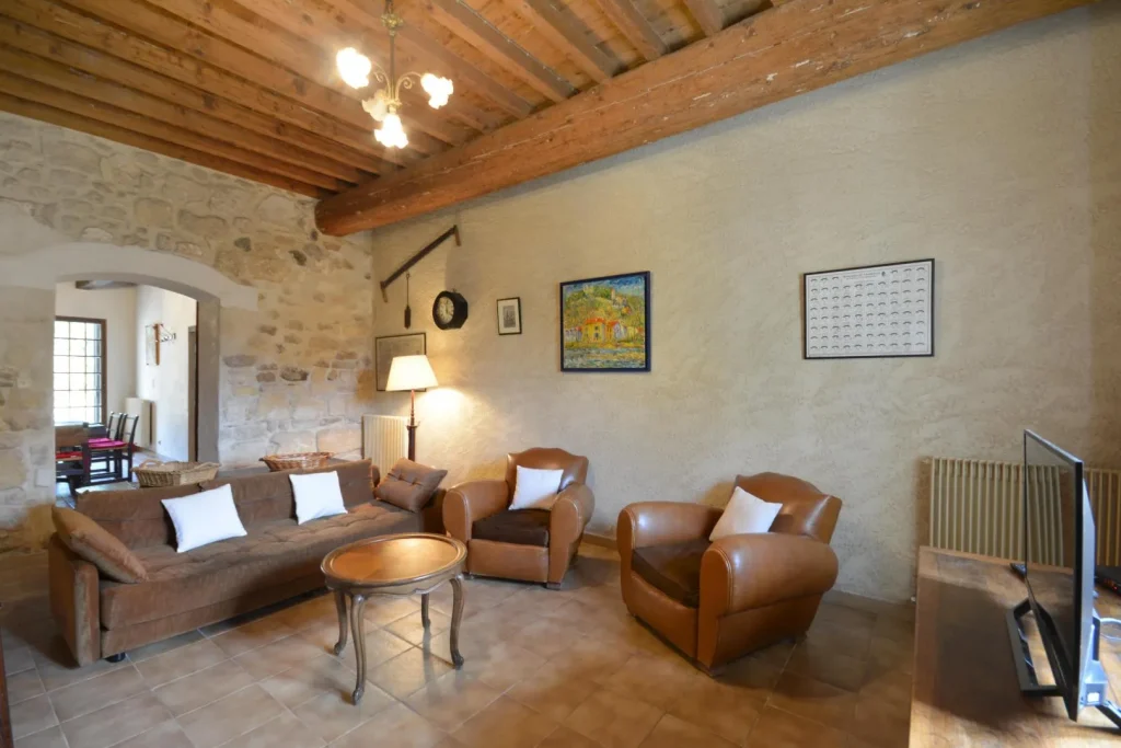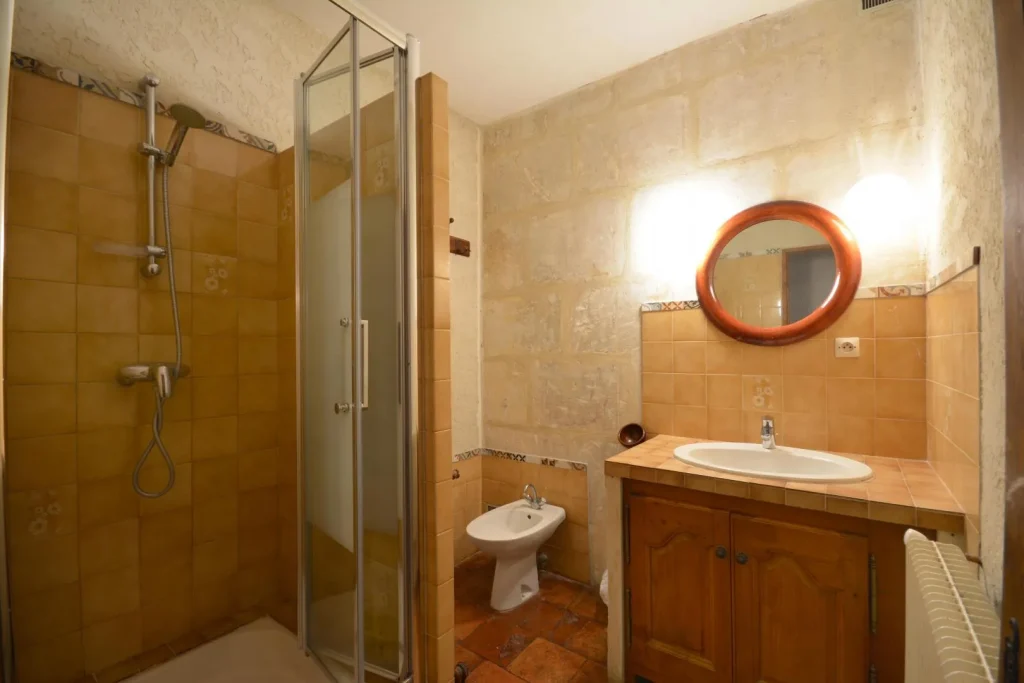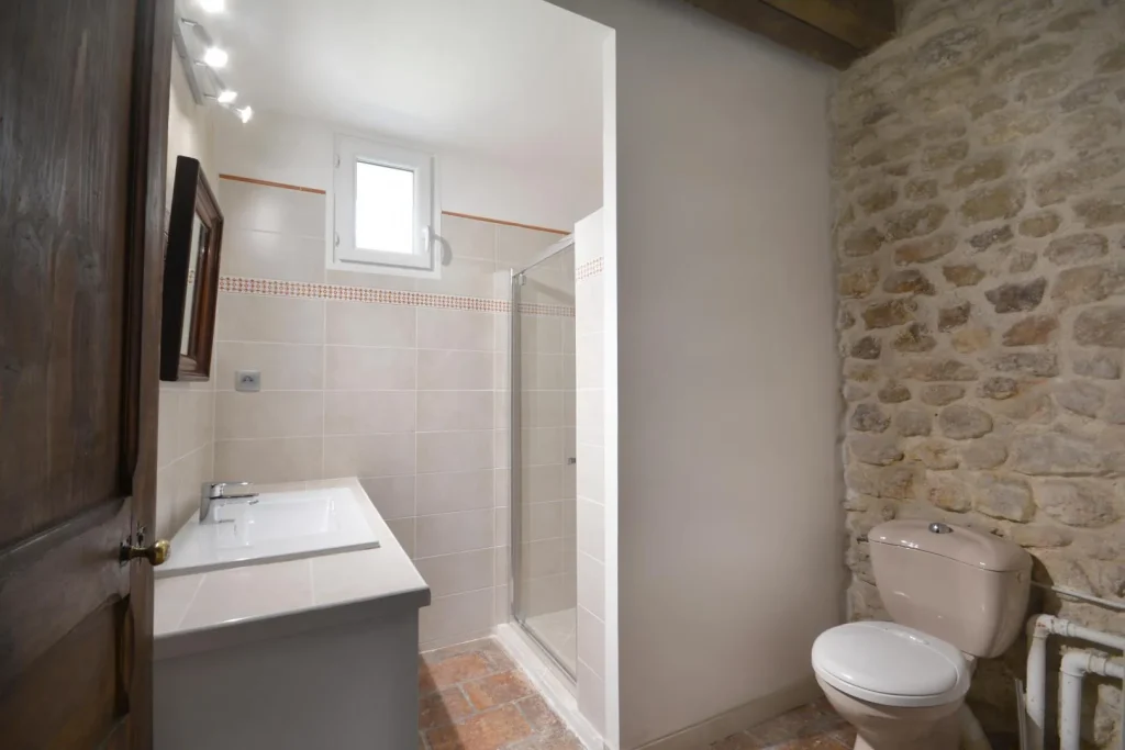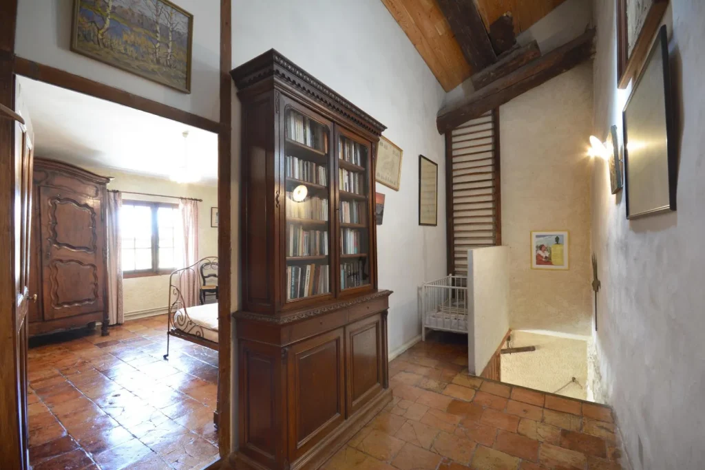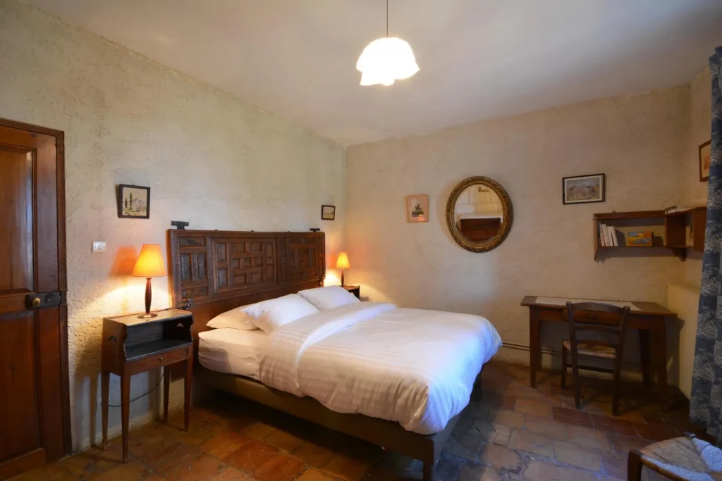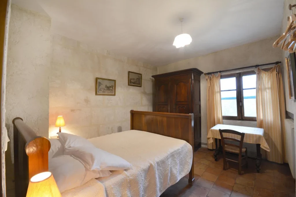 Une vaste chambre avec beaucoup de cachet, comprenant un lit en 140 et un lit 1 personne (90x190cm), traversante. Une chambre avec deux lits 1 personne en 100x190cm, accessible par la première chambre.